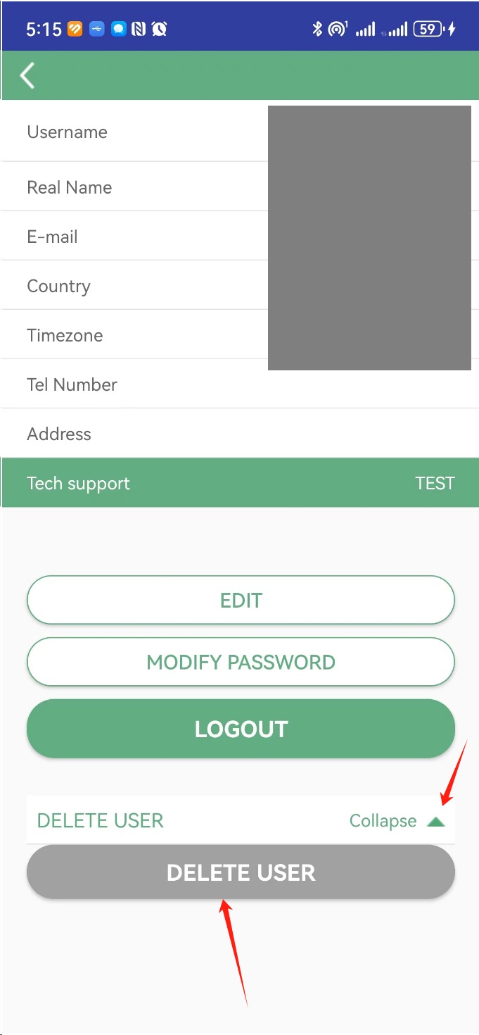 Step 2: Click "DELETE USER" button after expand.